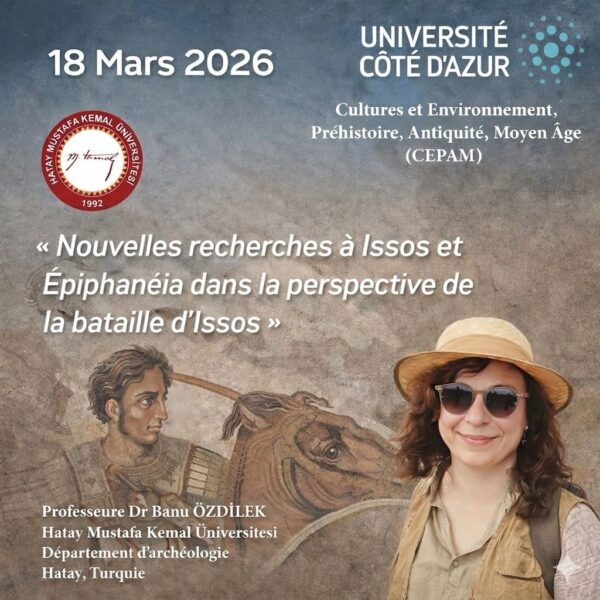 Hatay Mustafa Kemal Üniversitesi Arkeoloji Bölümü öğretim üyesi Prof. Dr. Banu Özdilek, 18 Mart 2026 tarihinde Fransa’da Université Côte d’Azur bünyesinde faaliyet gösteren CEPAM...