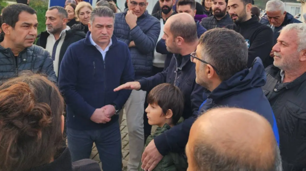 Hatay’ın Defne ilçesindeki Şehit Öğretmen Aybüke Yalçın Geçici Konaklama Merkezi için AFAD tarafından verilen tahliye emrine karşı düzenlenen eyleme katılan CHP Hatay Milletvekili Servet...