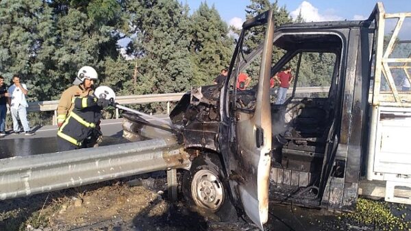 Hatay’ın Arsuz ilçesinde seyir halindeyken alev alan bir transit, kısa sürede kullanılamaz hale geldi. O anlar cep telefonu kamerasına yansıdı. Hatay’ın Arsuz ilçesinde seyir halindeyken alev...