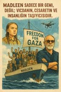 Sicilya’dan Gazze’ye doğru insani yardım için yola çıkan Madleen, Filistin halkına ulaşmak, abluka altındaki Gazze’deki bir çocuğun yarasına pansuman yapmak, bir annenin boş tenceresine biraz un, oksijen tüpüne muhtaç olan bir yetişkine nefes olmak için denize açılan bir yelkenli, bir cesaret örneği…