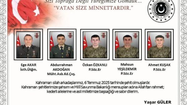 Milli Savunma Bakanlığı (MSB), Libya’da görev yapan Hava Pilot Albay İsmail Haldun Maden’in geçirdiği kalp krizi sonucu şehit olduğunu açıkladı. 27 Haziran 2025 tarihinde...