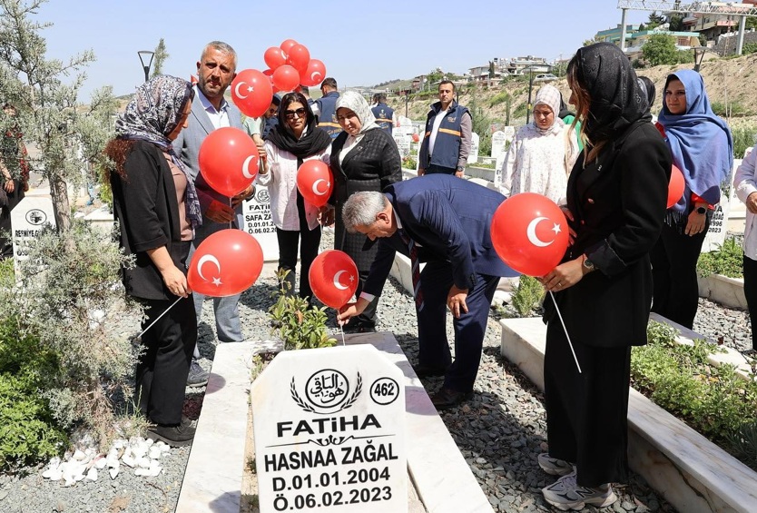 Hatay’ın Antakya ilçesinde 23 Nisan Ulusal Egemenlik ve Çocuk Bayramı kutlamaları kapsamında Narlıca Deprem Şehitliği’nde mezarları bulunan çocukların mezarları ziyaret edildi. AK Parti Antakya İlçe Kadın Kolları Başkanı Selma Sönmez ve beraberindeki heyet, ziyaret ettikleri mezarlara çiçek ve balon bıraktı. 23 Nisan Ulusal Egemenlik ve Çocuk Bayramı dolayısıyla başta çocuklar olmak üzere deprem felaketinde hayatını kaybeden tüm vatandaşları rahmetle andıklarını kaydeden Sönmez, tüm deprem kurbanlarının ruhuna dua okudu.