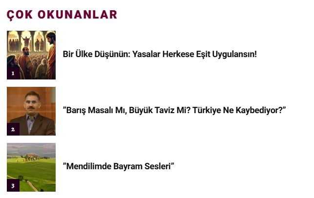 Listenin 2. sırasında ise deneyimli köşe yazarı Mehmet Salkım’ın Türkiye ve uluslararası siyasete dair kapsamlı analizleriyle öne çıkan “Barış Masalı mı, Büyük Taviz mi? Türkiye Ne Kaybediyor?” başlıklı yazısı bulunuyor. Türkiye’nin son dönemdeki diplomatik hamlelerini mercek altına alan bu yazı, ülkenin uluslararası alandaki konumunu ve olası risklerini değerlendiren önemli bir metin olarak öne çıkıyor.