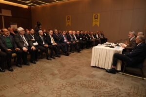 HBB Başkanı Mehmet Öntürk toplantıda yaptığı konuşmada, katılımcılara kentteki altyapı çalışmaları, deprem sonrası projeler ve Büyükşehirin gelecek vizyonu hakkında bilgiler verirken, sanayici ve esnafa yönelik yürüttükleri çalışma ve destekleri anlattı.