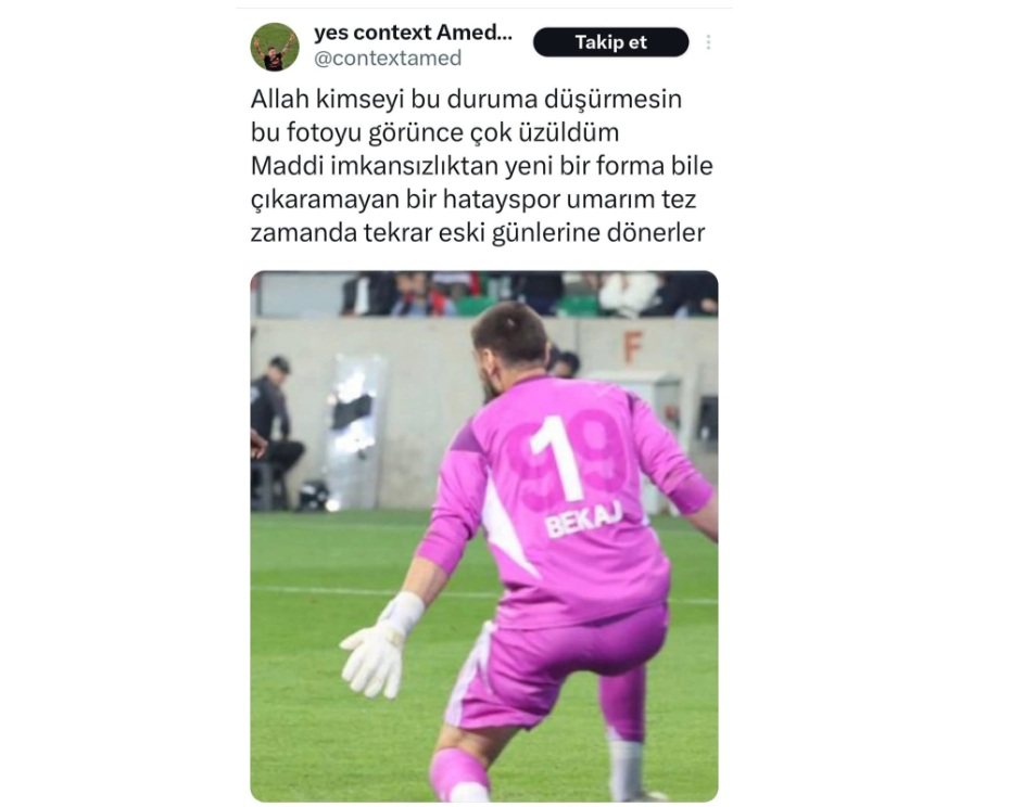 Trendyol Birinci Lig’de bu sezon talihi bir türlü gülmeyen, sürekli sırtına yeni bir yük bindirilen Atakaş Hatayspor’umuz, geçtiğimiz hafta oynadığı bir maçla değil, yaşadığı bir dramla gündeme geldi. Diyarbakır’da Amedspor karşısına çıkan takımımızın kalesini koruyan file bekçisi Bekaj’ın sırtındaki forma numarası, aslında tüm bir şehrin içine düştüğü unutulmuşluğun, görmezden gelinmişliğin acı bir metaforuydu.