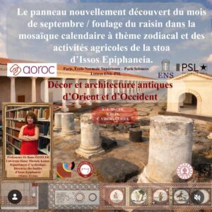 Konferansta, Erzin’deki Issos Epiphaneia kazılarında ortaya çıkarılan zodyak temalı takvim mozaiğinin Eylül ayı paneli ele alınacak. Özellikle üzüm ezme sahnesi üzerinden antik dönemde tarımsal faaliyetlerin takvim ikonografisi ve mimari dekorla ilişkisi tartışılacak.