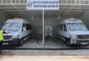 HBB Ulaşım Dairesi Başkanlığı, Antakya Şehirlerarası Yolcu Terminali ile Antakya İlçeler Arası Minibüs Garajı’nda ücretsiz araç yıkama hizmetine başladı.