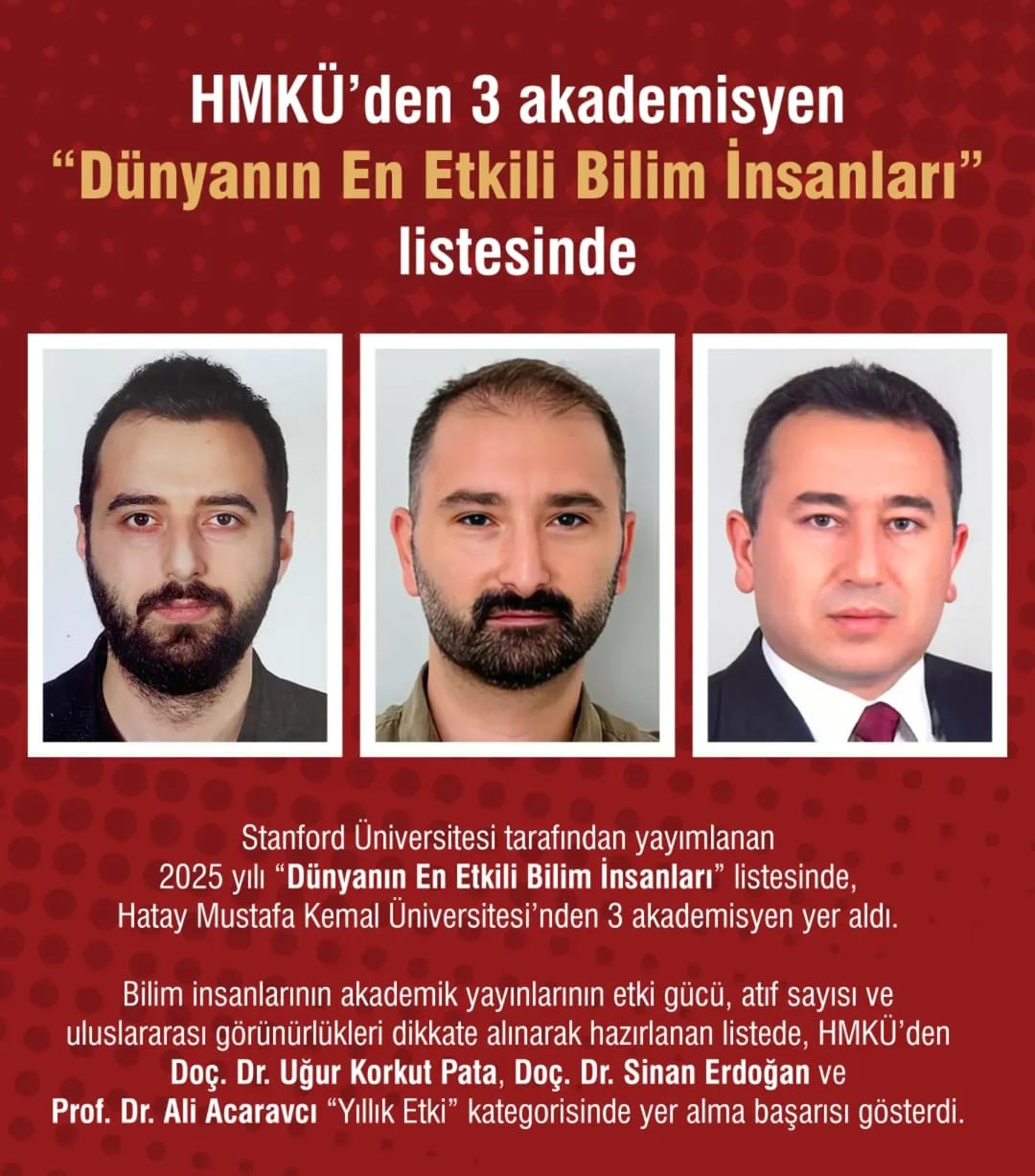 Stanford Üniversitesi tarafından her yıl yayımlanan “Dünyanın En Etkili Bilim İnsanları” listesinde, Hatay Mustafa Kemal Üniversitesi’nden 3 akademisyen yer aldı.
