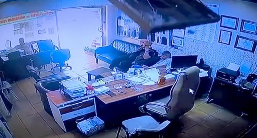 Olay, muhtar Sedat Sakin’in diğer mahalle muhtarlarıyla birlikte ofisinde bulunduğu sırada meydana geldi. Masasının arkasındaki koltukta oturan Sakin, bir anda yerinden kalkarak yan koltuğa geçti. Tam bu esnada alçı pandandan yapılmış asma tavan büyük bir gürültüyle oturduğu koltuğun ve masanın üzerine düştü.