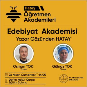 Hatay Öğretmen Akademileri bünyesinde düzenlenen Edebiyat Akademisi, bu kez “Yazar Gözünden HATAY” temasıyla edebiyatseverlerle buluşuyor. Yazar Osman TOK ve Gülnaz TOK‘un konuşmacı olarak katılacağı etkinlik, 26 Nisan Cumartesi günü saat 14.00’te Defne Kültür Çarşısı Eğitim Salonu’nda gerçekleştirilecek.